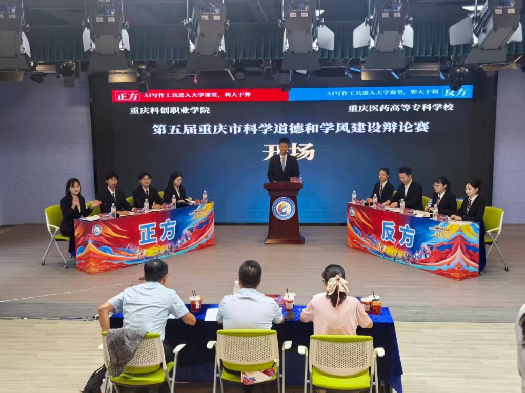 9月27日,由市科协、市教委、市科技局、团市委、市社科联共同主办的重庆市第五届科学道德和学风建设辩论赛复赛及半决赛在学校展开激烈角逐。市科协党组成员、副主席冯纲出席欢迎仪式,重庆医药高等专科学校党委委员、副校长彭坤在在欢迎仪式上致辞。市科协、市教委、市科技局、团市委、市社科联等主办单位和我校相关处室负责人、各参赛高校领队及选手代表、我校师生代表等共计200余人参加欢迎仪式。
