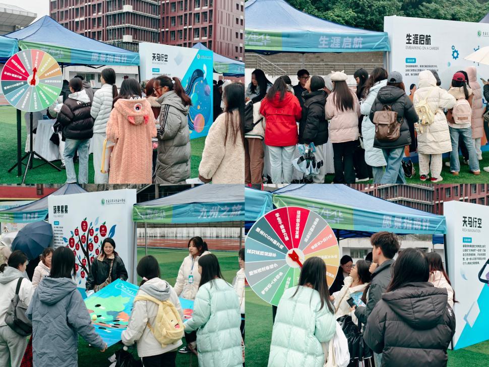 为持续深化医药类大学生职业生涯教育,普及生涯成长理念,夯实医药专业就业能力根基,提升生涯规划能力,学校于2025年12月3日至5日在运动场举办“规划启航、职引未来”主题生涯嘉年华活动。本次活动由学校主办,招生就业处承办,各二级学院积极动员组织,累计吸引全校2800余名学生参与,打造了一场沉浸式、专业化的生涯规划体验盛宴。