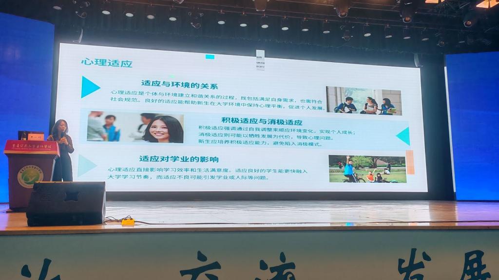 10月23日下午,学校在学生活动中心成功举办了“心适应·新旅程”2025级新生适应专题知识讲座,吸引了400余名新生积极参与。本次讲座特邀重庆工业职业技术大学心理健康教育中心主任王一竹副教授担任主讲人。