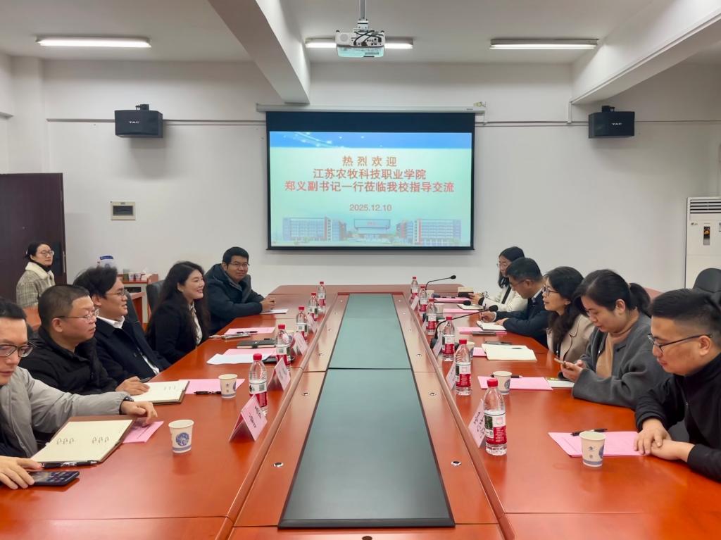 12月10日上午,江苏农牧科技职业学院党委副书记郑义一行6人来我校调研交流。重庆医药高等专科学校党委委员、副校长兰作平,药学院(中药学院)相关同志参与交流活动。