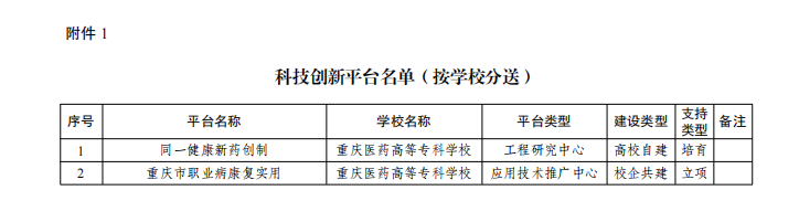 近日,重庆市教育委员会发布《关于立项(培育)一批科技创新平台的通知》,学校组织申报的同一健康新药创制工程研究中心、重庆市职业病康复实用应用技术推广中心两个科技创新平台成功获批立项(培育)。此次获批不仅是对学校科研实力、学科建设水平及服务区域发展能力的充分肯定,也将进一步推动学校服务重庆区域医药健康产业发展的科技创新能力迈上新台阶。