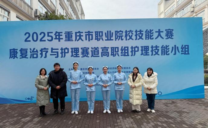 1月8日,2025年重庆市职业院校技能大赛康复治疗与护理赛道高职组护理技能小组在我校举办。本次大赛旨在检验我市职业院校康复治疗与护理专业教学成果和学生技能水平,推动职业教育改革、深化产教融合、促进人才培养模式创新。经过激烈角逐,我校教师车小雯、刘莹、柳佳利、朱丽指导的参赛队伍在众多队伍中脱颖而出,斩获两枚金奖。