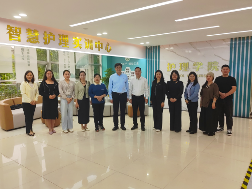 交流会后,谭冠著一行实地参观了我校护理实训中心、临床实训中心等教学场地,对我校完善的实训设施和规范的教学管理给予了高度评价。双方均表示,今后将进一步加强沟通对接,开展更多互动交流,相互学习、共同进步,携手为区域职业教育发展贡献力量。