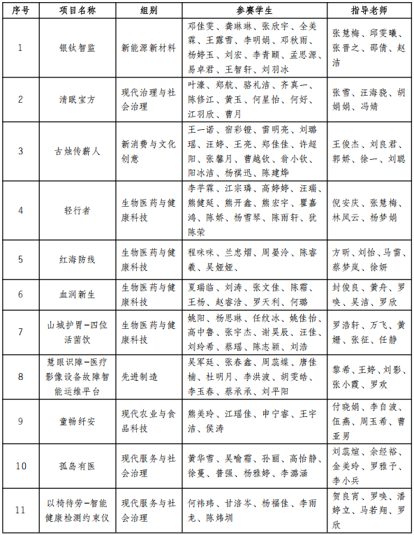 入围校内选拔赛的作品经由资格审查、评审专家匿名盲审、成果原件复核、路演答辩等环节,综合打分排名,根据《“挑战杯”中国大学生创业计划竞赛章程》要求,现对入围市赛的11个项目信息进行公示(名单详见附件)。对结果如有异议者,请在5个工作日内向校团委反映。