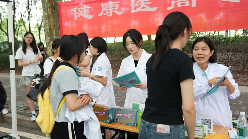 9月25日中午,宣传月重点活动——“健康体验日”在学校食堂十字路口林荫大道顺利举行。活动现场设有健康体测、健康咨询、爱牙科普、承诺打卡等多个区域,吸引了广大师生踊跃参与。药学院杨延音副教授、临床医学院口腔教研室主任王旭副教授、公共卫生与应急管理学院医学营养教研室主任陈香郡,以及来自浙江诺特健康科技股份有限公司的营养师彭名琴、曾鑫等校内外专家齐聚现场,为师生提供专业咨询与科普服务,营造了“人人关注健康、人人参与行动”的浓厚氛围。