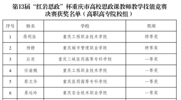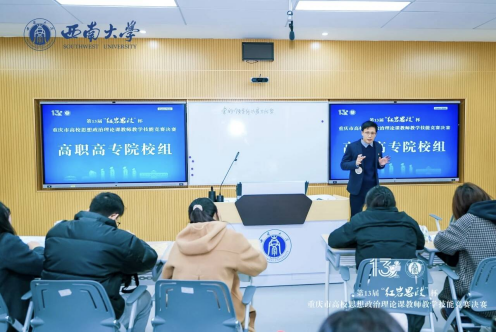 近日,由重庆市委教育工委、重庆市教委、重庆市委宣传部主办,西南大学和重庆日报理论视频栏目《理响青年》承办的第13届“红岩思政”杯重庆市高校思政课教师教学技能竞赛决赛圆满落幕。学校马克思主义学院教师蔡文华凭借出色的教学能力与扎实的理论功底斩获一等奖。