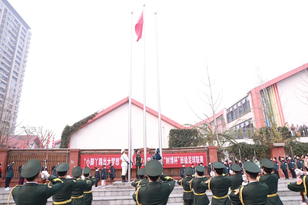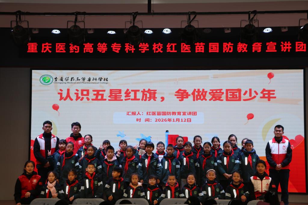 为传承红色基因、厚植家国情怀,应沙坪坝区树人博文小学邀请,学校临床医学院“红医苗”国旗护卫队于2026年1月12日上午,赴该校联合举办爱国主义教育主题活动。以升旗仪式为载体,以国防宣讲作桥梁,将爱国精神浸润童心,为少年成长播下红色火种。