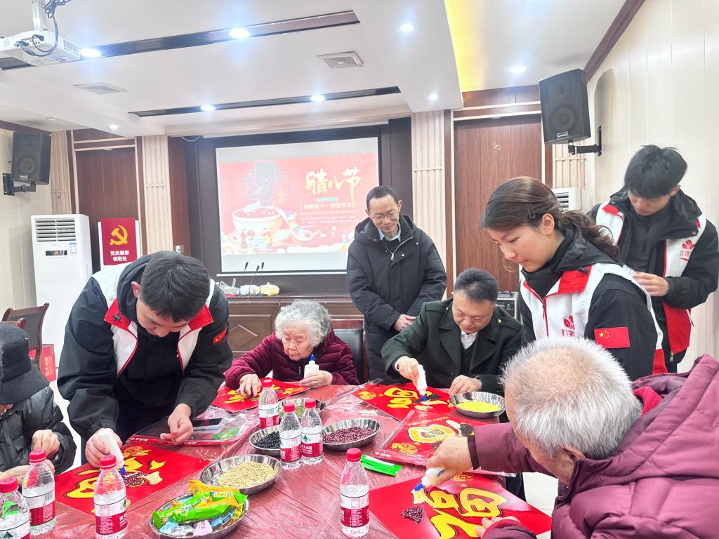 巧艺助耆老,专业素养践使命。五谷杂粮画创作环节,“红医苗”志愿者们立足医学专业培养要求,将“耐心、细心、责任心”的职业素养融入志愿服务,一对一协助行动不便的老干部完成创作。从食材选取到画面构图,从动作辅助到细节叮嘱,志愿者们以专业服务传递人文关怀,既锤炼了临床服务所需的沟通能力与实操技巧,更深化了“以人民健康为中心”的红医理念。