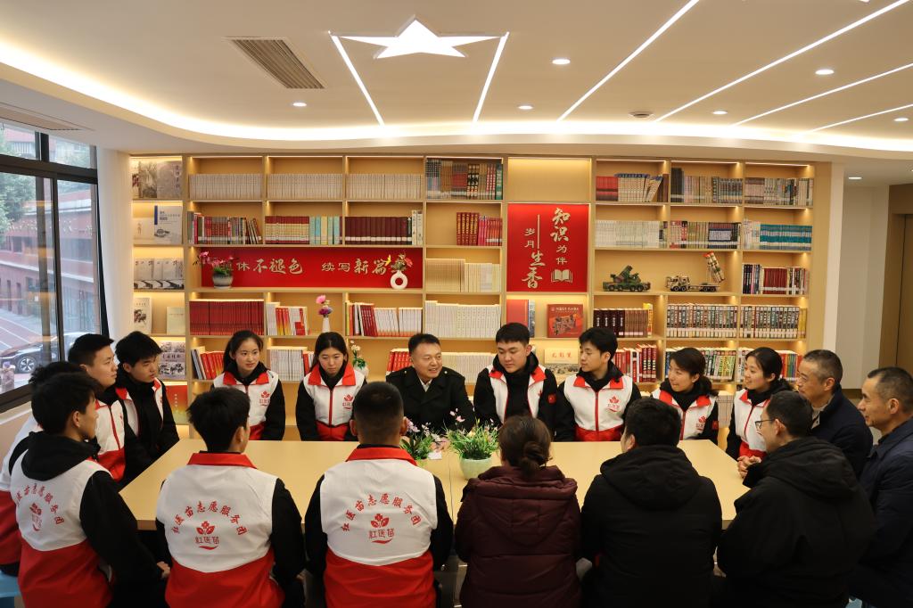 座谈传箴言,立德树人明方向。民俗活动后,原沙坪坝区人民武装部政委刘星与志愿者们开展专题座谈。刘政委结合军旅生涯与健康保障工作经验,围绕“传承红色基因、精进医学本领、勇担时代使命”三大主题勉励学子:红医人才既要胸怀家国、坚定信念,更要精研技术、练就硬功,在军民健康保障中践行初心、贡献力量。这番寄语为学校立德树人工作指明实践路径,让青年学子明确了红医成长的方向与担当。