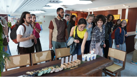 活动当天,法国学生们在浓郁的中医文化氛围中体验了中药香囊制作,亲身感受中医药在日常生活中的实用性与独特美学;随后,他们参与了传统茶艺体验,品尝了重庆本地名茶“永川秀芽”,在袅袅茶香中体会中国人的待客之道与养生智慧。