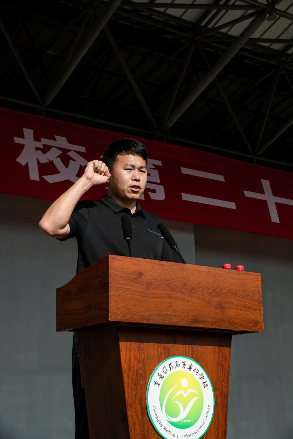 最后,学校党委书记、校长刘永生郑重宣布:重庆医药高等专科学校2026年校园体育文化节暨第二十一届春季田径运动会正式开幕!